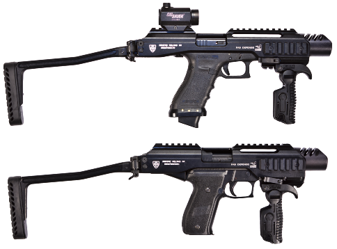 The K.P.O.S. is a Personal Defense Weapon Converter made of one piece of 6061-T6 Anodized Aluminum. It is the perfect add-on for your Glock or Sig pistol. It was designed for Tactical Teams, but is perfect for personal protection.
